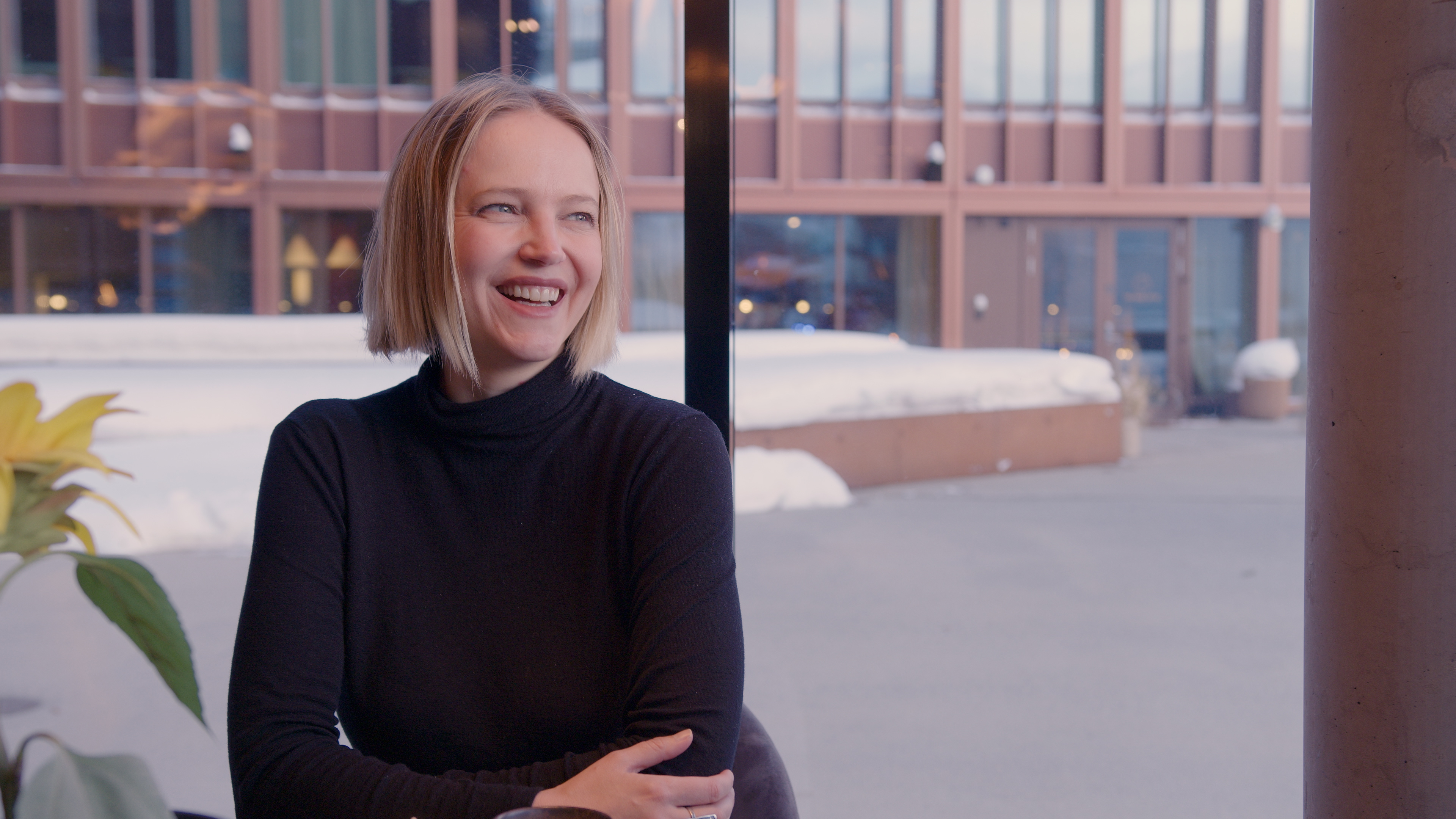 Askevold er i Tromsø i forbindelse med TIFFs kick-off, der Solomamma presenteres som festivalens åpningsfilm. Dette er hennes aller første besøk i Nord-Norge, og byen har pyntet seg i sitt vakreste vinterantrekk – med nysnø og årets aller siste solstråler.